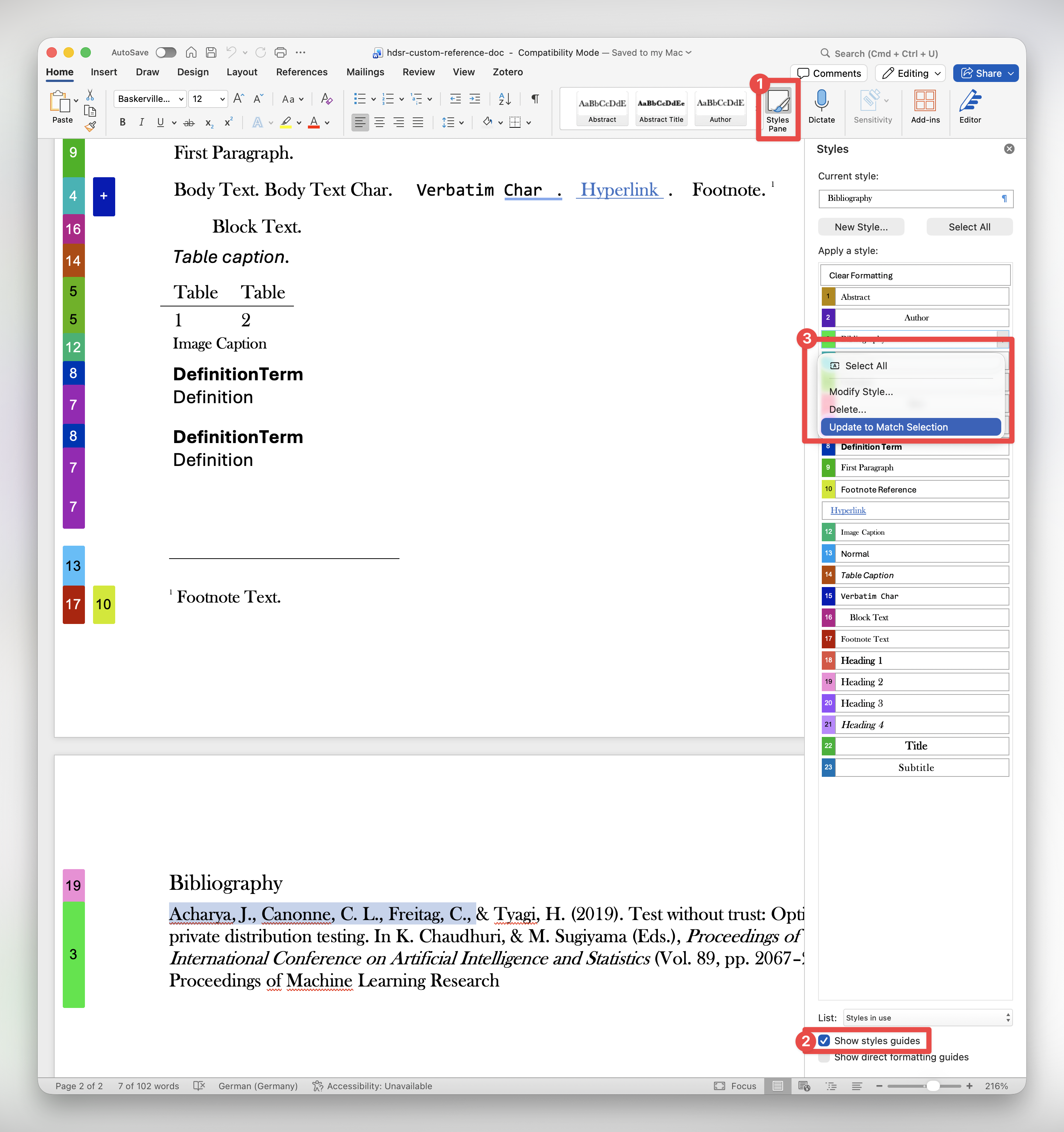 Journal-Provided-Template.docxas custom styles incustom-reference-doc.docx(ignoring any that I didn’t need (e.g. Level 5 Headings)).Render